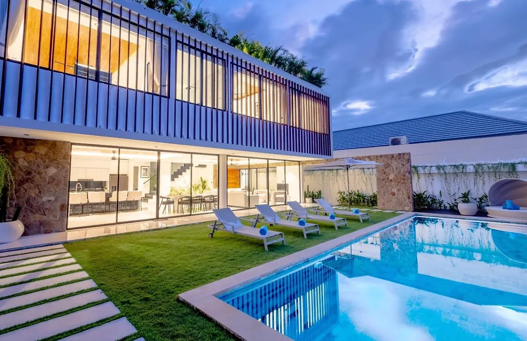 The Seminyak villa has 8 bathrooms with a hot tub.